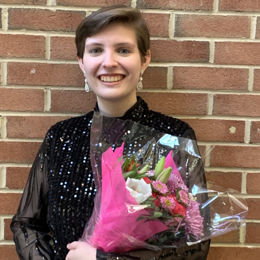 Below Left Toby Ichniowski’s Senior Recital – Spring 2023. Below Right Toby Ichniowski as Fanny in Rossini’s Cambiale di Matrimonio – Spring 2023.
