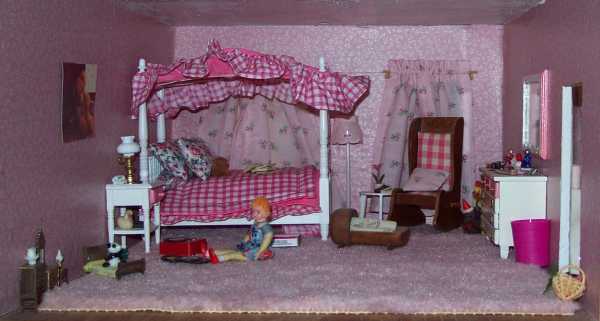 As I prepared the pictures for this page, it made me think of the many things that I still want to do with my dollhouse, especially making curtains for many of the rooms and more wall hangings. However I've still done a lot with it over the years.