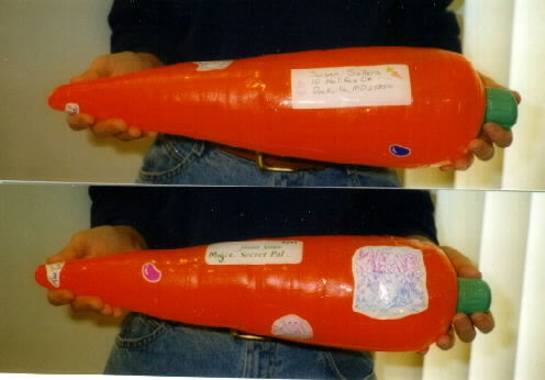 over stickers. Postage and address label applied directly to carrot and